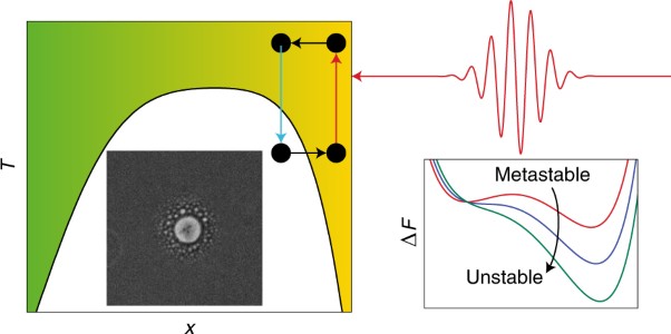 Control over phase separation and nucleation using a laser-tweezing potential pp506 - 510 Finlay Walton & Klaas Wynne doi:10.1038/s41557-018-0009-8 A low-power laser can cause phase separation or trigger the nucleation of a new phase in the proximity of a liquid–liquid critical point, or binodal, using a laser tweezing potential. This effect explains the physics behind non-photochemical laser-induced nucleation and suggests new ways of manipulating matter. |