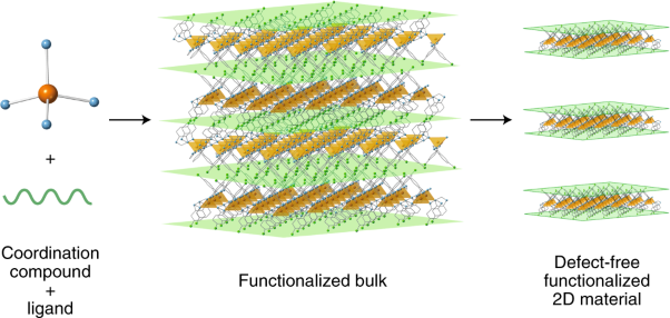 Surface engineering is an attractive route to tune the processability, stability and functionalities of 2D materials, but typically introduces defects in the resulting structures. Now, the issue has been circumvented through pre-synthetic functionalization instead; an isoreticular family of robust layered coordination polymers has been mechanically exfoliated to give functionalized crystalline magnetic monolayers.