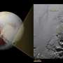 ![]() | The jagged shores of Pluto's highlandsThis enhanced color view from NASA's New Horizons spacecraft zooms in on the southeastern portion of Pluto's great ice plains, where at lower right the plains border rugged, dark highlands informally named Krun Macula. (Krun is the lord of the underworld in the Mandaean religion, and a 'macula' is a dark feature on a planetary surface.) |