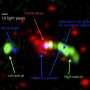 ![]() | Chance microlensing events probe galactic coresSome galaxies pump out vast amounts of energy from a very small volume of space, typically not much bigger than our own solar system. The cores of these galaxies, so called Active Galactic Nuclei or AGNs, are often hundreds of millions or even billions of light years away, so are difficult to study in any detail. Natural gravitational 'microlenses' can provide a way to probe these objects, and now a team of astronomers have seen hints of the extreme AGN brightness changes that hint at their presence. Leading the microlensing work, PhD student Alastair Bruce of the University of Edinburgh presents their work today (Friday 1 July) at the National Astronomy Meeting in Nottingham. |