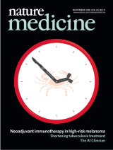 Neoadjuvant versus adjuvant ipilimumab plus nivolumab in macroscopic stage III melanoma pp1655 - 1661 Christian U. Blank, Elisa A. Rozeman, Lorenzo F. Fanchi, Karolina Sikorska, Bart van de Wiel et al. doi:10.1038/s41591-018-0198-0 Neoadjuvant combination immunotherapy in patients with advanced melanoma shows favorable activity over adjuvant treatment and warrants future evaluation with modified dosing schedules to reduce treatment-related adverse events. |